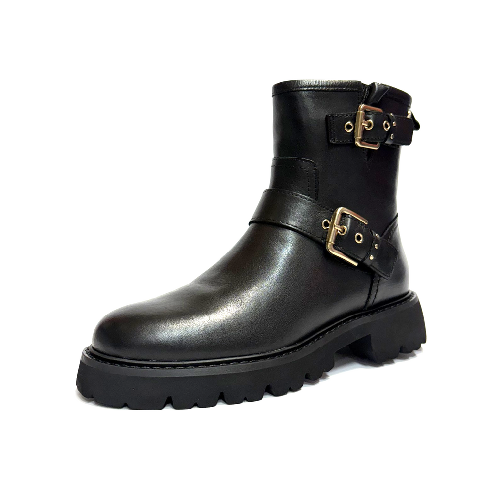SCARPE DONNA CARMELA STIVALETTI BASSI BIKER IN VERA PELLE 162591 NERO
