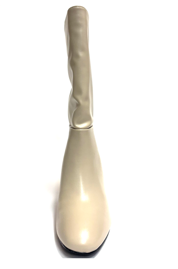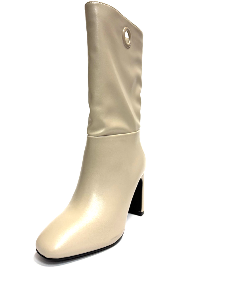 Stivaletti al polpaccio Laura Biagiotti in colore mud, caratterizzati da un tacco alto piatto che garantisce stabilità e comfort durante tutto il giorno. Realizzati con materiali selezionati di alta qualità, questi stivali uniscono eleganza e praticità, ideali per completare outfit sofisticati mantenendo una calzata confortevole.