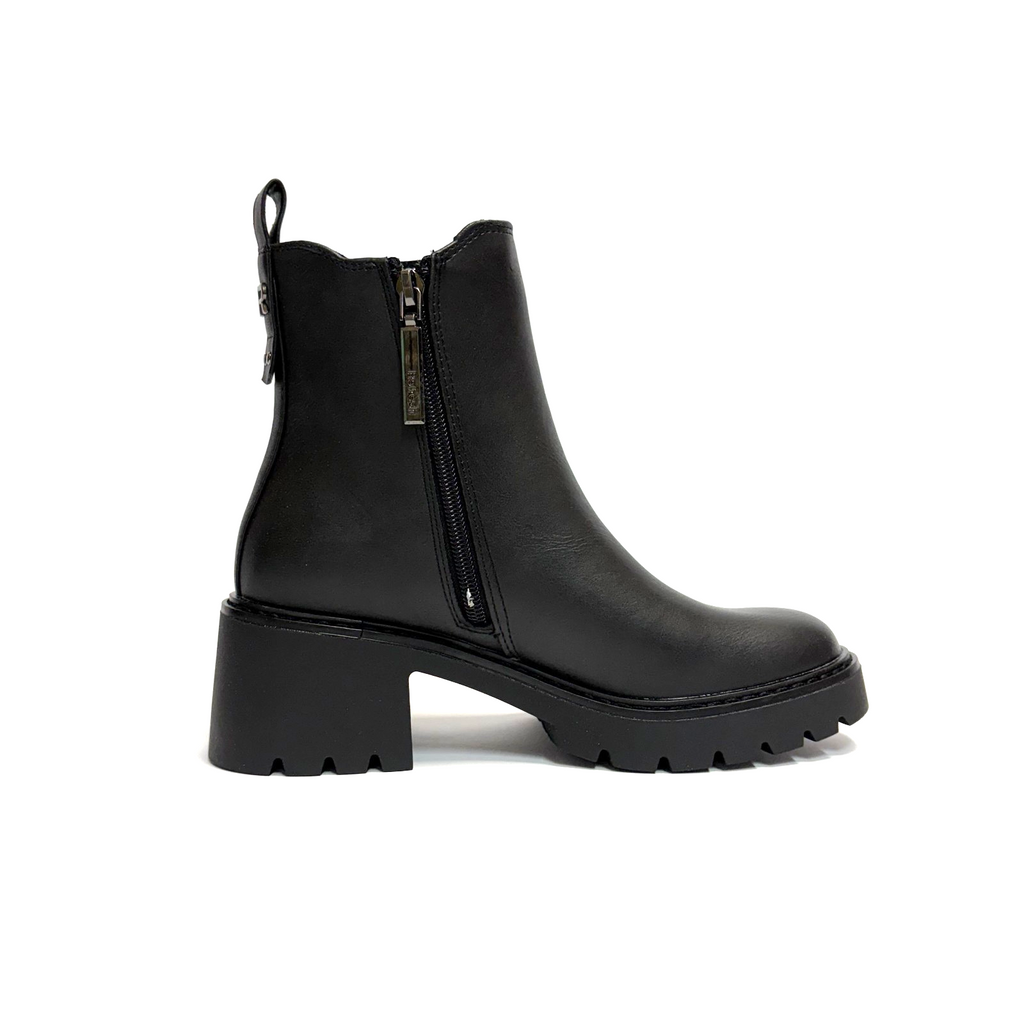 Gli stivaletti Refresh con cerniera ed elastico, tacco medio e plateau nero uniscono praticità e design sofisticato. La combinazione di cerniera ed elastico facilita la calzata e garantisce una vestibilità adattabile, mentre il tacco medio con plateau assicura comfort e stabilità durante l’uso prolungato. Realizzati con materiali resistenti, sono perfetti per chi desidera un look elegante e funzionale, adatto sia all’ufficio che al tempo libero.
