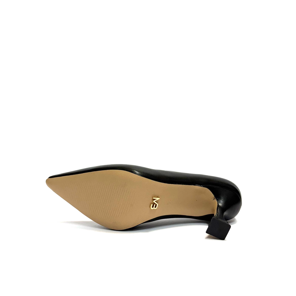 Il decolleté Miabelle si distingue per il tacco medio a rocchetto, che garantisce un perfetto equilibrio tra eleganza e comodità. Realizzato in un raffinato colore nero, questo modello è ideale per completare outfit professionali o per serate dal carattere sobrio ma sofisticato.