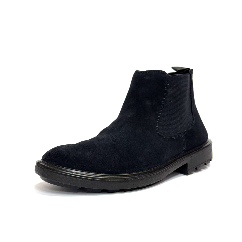 SCARPE UOMO LUXURY STIVALI STIVALETTI CON ELASTICI BEATLES BLU IN CAMOSCIO