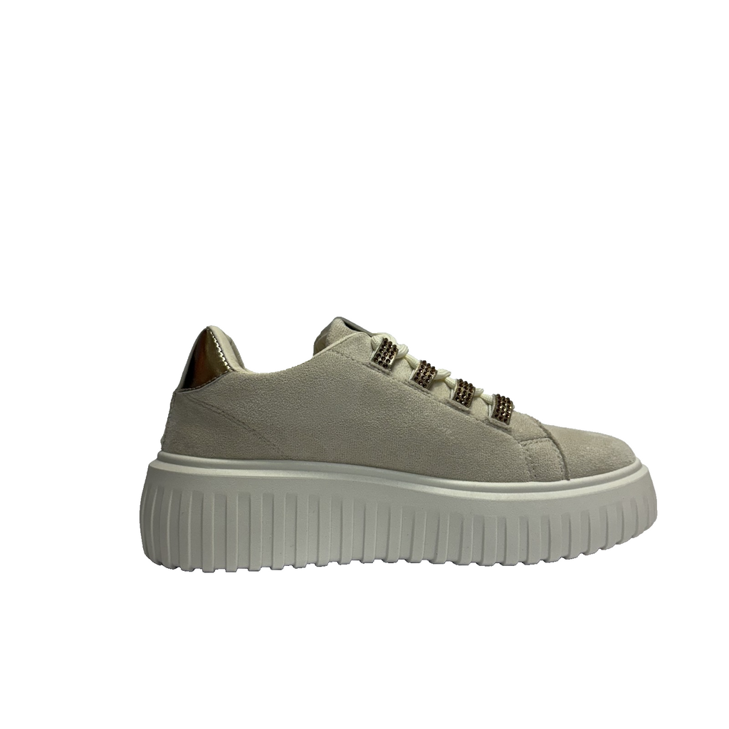 Le sneakers Laura Biagiotti color ivory offrono una gomma media leggera per un comfort duraturo e una calzabilità versatile. Il design raffinato unisce eleganza e praticità, rendendole ideali sia per l'uso quotidiano che per occasioni informali. La leggerezza del materiale assicura facilità di movimento senza rinunciare allo stile.
