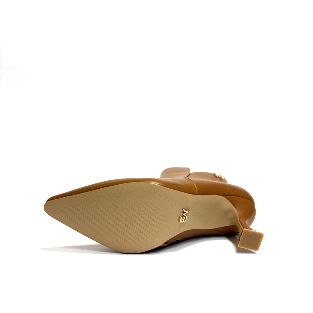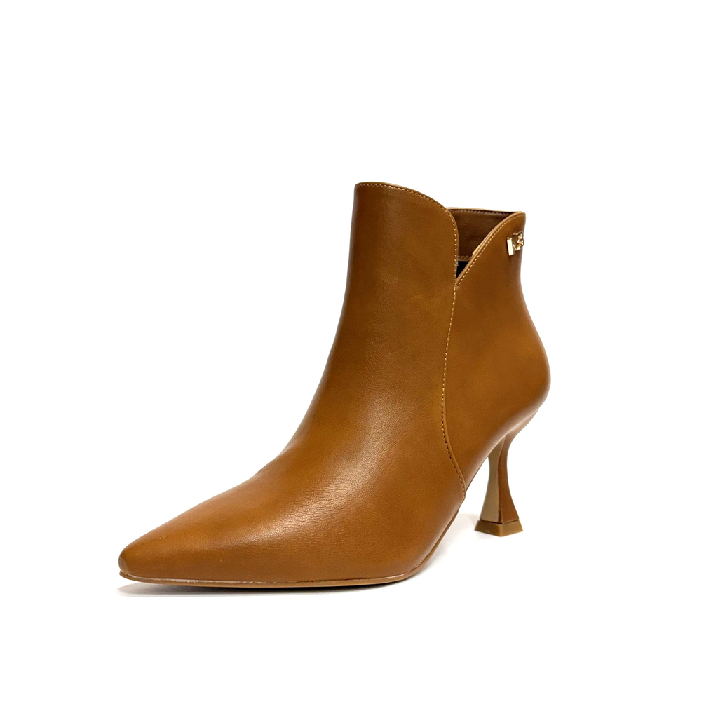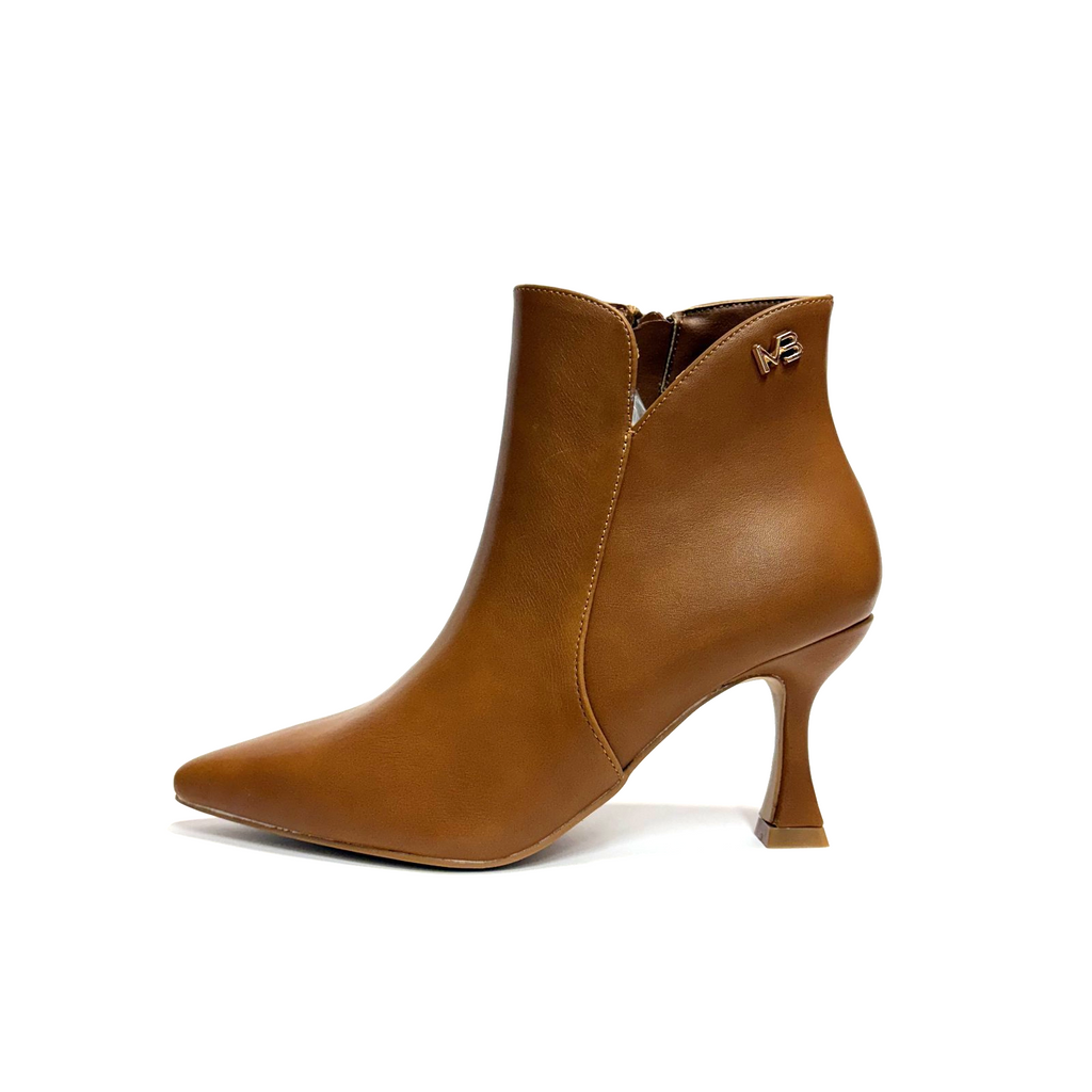 Stivaletti Miabelle con tacco medio a rocchetto in pregiata tonalità cuoio, progettati per unire eleganza e comfort. La forma slanciata e il tacco stabile garantiscono una calzata sicura, ideale per accompagnare con stile ogni look autunnale e invernale. La tonalità cuoio versatile si abbina facilmente a diverse combinazioni di outfit, conferendo un tocco sofisticato senza rinunciare alla praticità.