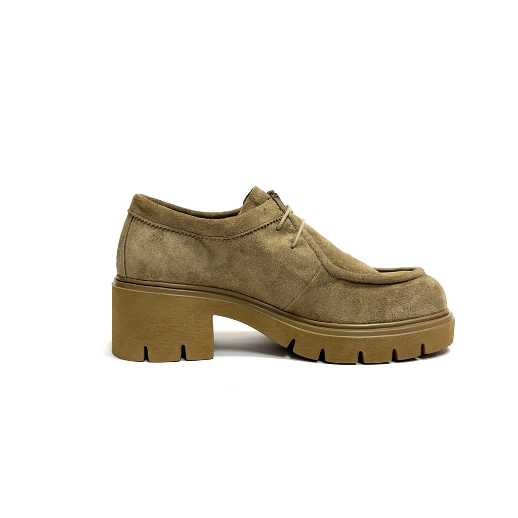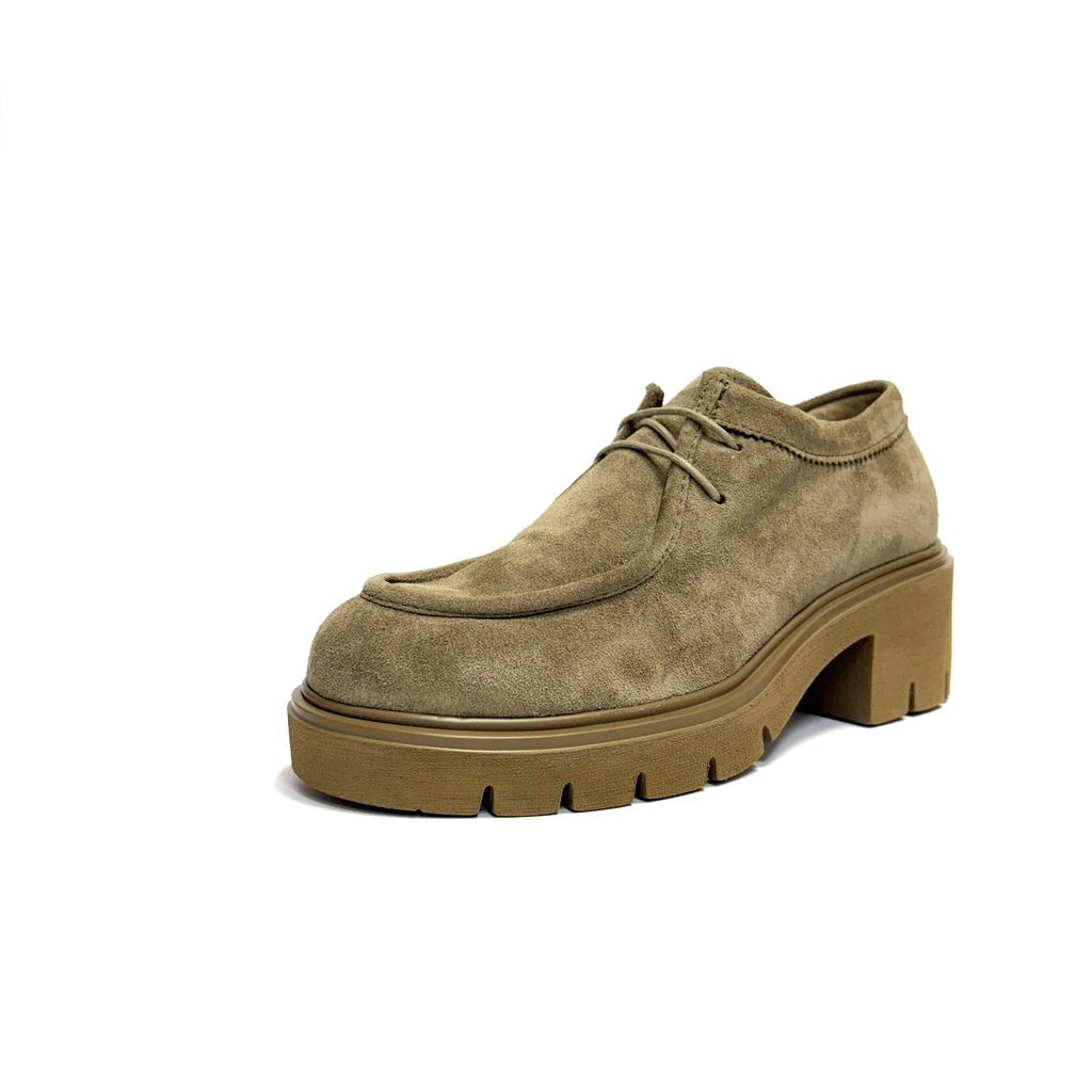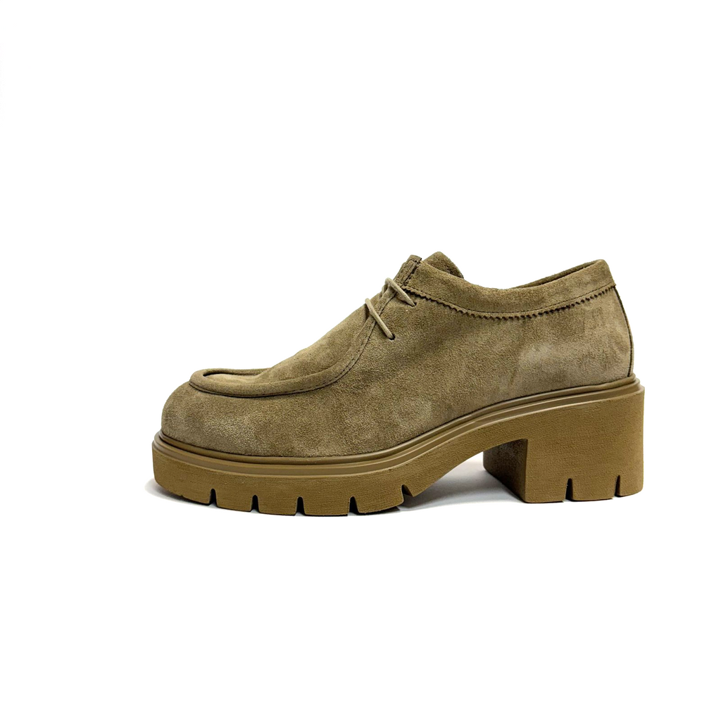 NERO GIARDINI SCARPE DONNA STRINGATE CON TACCO MEDIO I513987D ARGILLA CAMOSCIO