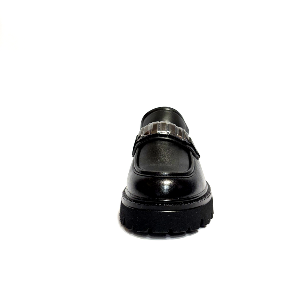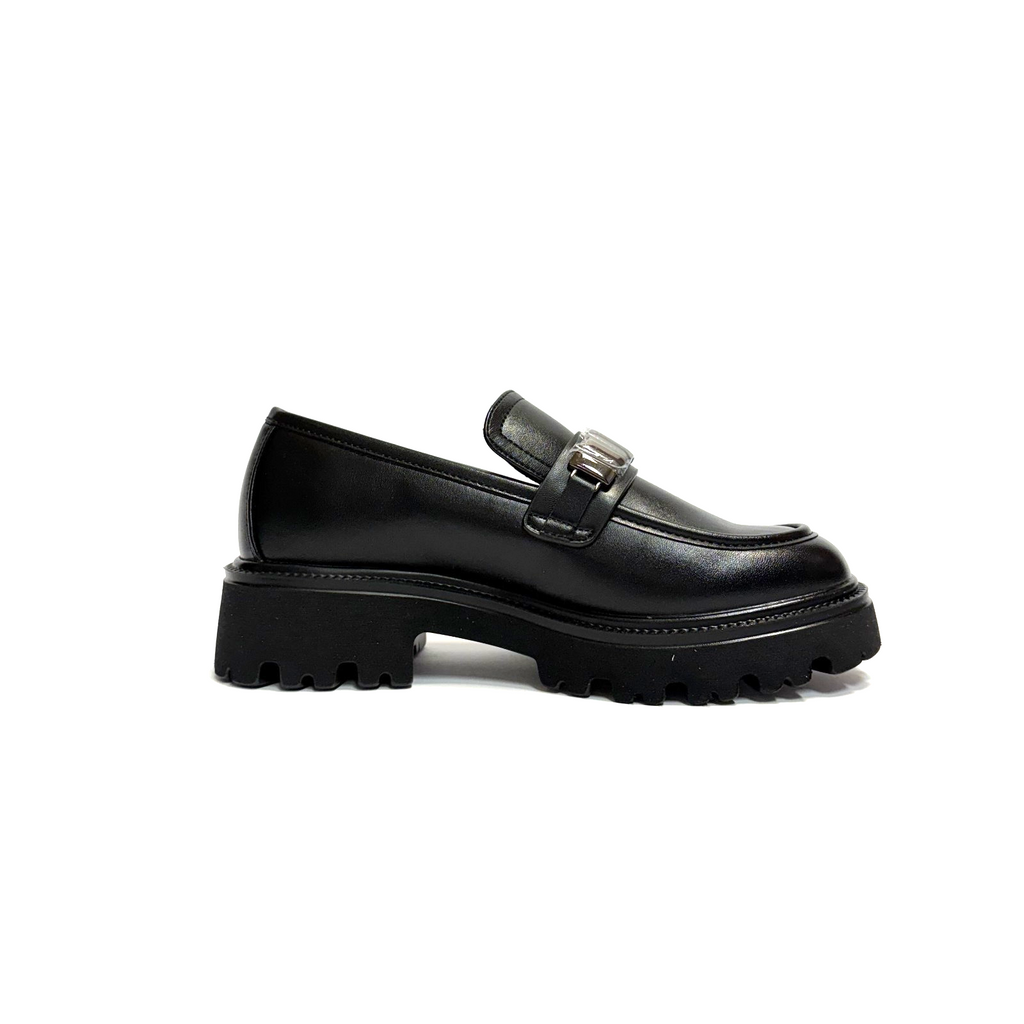 SCARPE DONNA KEYS MOCASSINI COLLEGE CON ACCESSORIO LEGGERI K-11461 NERO PELLE